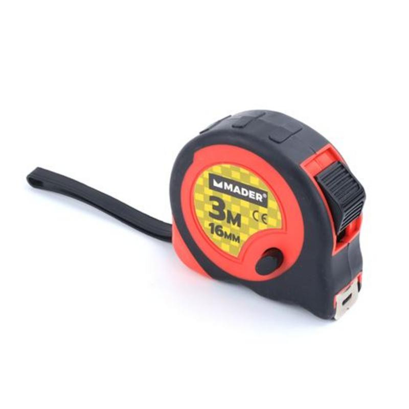 El flexómetro bimaterial Mader es una herramienta de medición imprescindible, diseñada para ofrecer precisión y durabilidad en una amplia gama de aplicaciones. Con una longitud de 3 metros y una anchura de cinta de 16 mm, es perfecto tanto para tareas domésticas como para trabajos de bricolaje y proyectos profesionales.