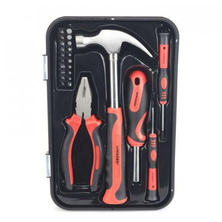 Descubre la versatilidad y eficiencia con el Kit de Herramientas Mader de 25 Piezas, diseñado para afrontar una amplia gama de tareas domésticas y pequeños proyectos de bricolaje. Este completo juego reúne las herramientas más esenciales en un formato compacto y fácil de almacenar, ideal para cualquier hogar o taller.