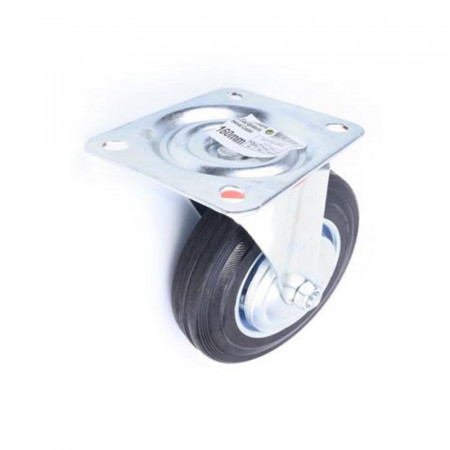 Fabricada con goma negra de alta calidad, la rueda proporciona una tracción excelente y una absorción de impactos adecuada, lo que se traduce en un movimiento suave y silencioso. Su característica giratoria permite una maniobrabilidad completa, facilitando los cambios de dirección y la navegación en espacios reducidos.