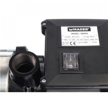 Equipada con un motor de inducción fiable y una construcción robusta con grado de protección IPX4, la Bomba Eléctrica Multicelular Mader garantiza durabilidad y resistencia a salpicaduras de agua, lo que la hace apta para diversas condiciones de uso. Su capacidad para trabajar con agua a una temperatura máxima de 35°C la convierte en una herramienta versátil y eficiente.