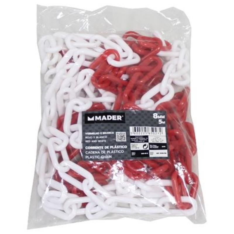 Con un diámetro de 8 mm y una generosa longitud de 5 metros, esta cadena se presenta en un llamativo color blanco y rojo, lo que asegura una excelente visibilidad y capta la atención de manera eficaz. Es una herramienta indispensable para: