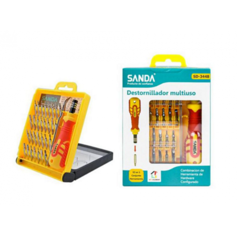 El destornillador SANDA multiuso SD-3448 es una herramienta esencial para cualquier caja de herramientas. Diseñado para ofrecer máxima versatilidad y eficiencia, este kit incluye una amplia variedad de puntas y accesorios que te permitirán abordar desde las reparaciones electrónicas más delicadas hasta tareas de bricolaje en el hogar. Su robusta construcción garantiza durabilidad y precisión en cada uso.