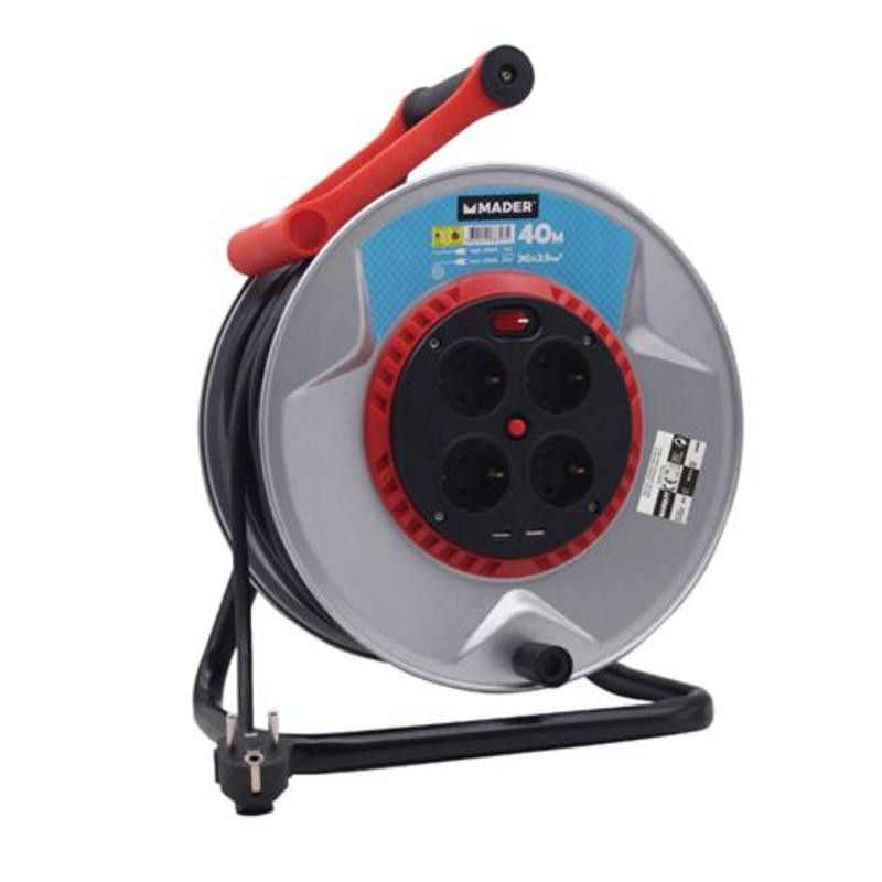 Optimiza tu espacio de trabajo y expande tus posibilidades eléctricas con el enrollador de cable metálico Mader de 40 metros. Diseñado para ofrecer máxima durabilidad y funcionalidad, este carrete de extensión es un aliado indispensable tanto para profesionales como para aficionados al bricolaje.