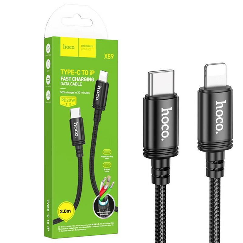 Con el Hoco X89, obtén un cable que no solo carga tus dispositivos rápidamente, sino que también está diseñado para durar. ¡La solución perfecta para mantener tus dispositivos Apple siempre listos!