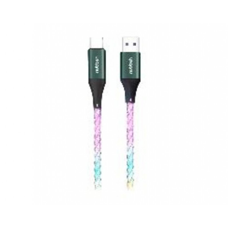 Ilumina tu conexión con el cable NUBBEH Elisium. Disfruta de la carga rápida de 3A y la vibrante iluminación LED multicolor en un diseño USB-A a USB-C de 1 metro. Modelo (NBTCABLACLED).