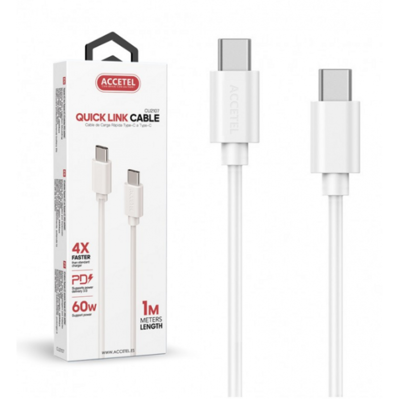El cable Accetel modelo CU2107 es la solución perfecta para quienes buscan una carga rápida y eficiente. Con una capacidad de entrega de energía de hasta 60W, este cable USB-C a USB-C permite recargar tus dispositivos compatibles en tiempo récord, asegurando que siempre tengas la energía necesaria para tu jornada.