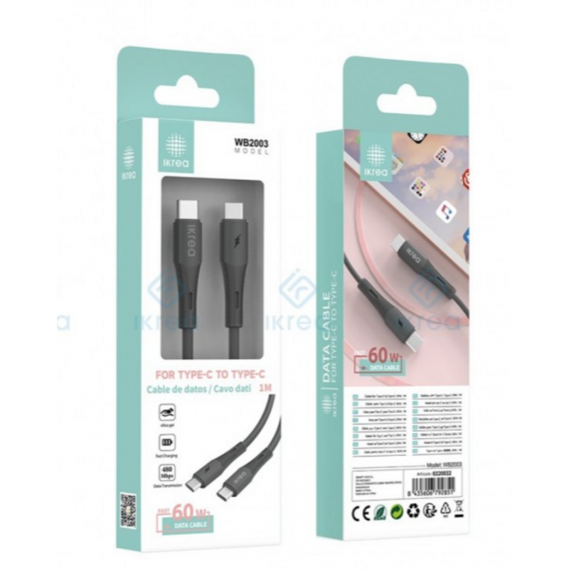 El cable de datos Ikrea USB-C a USB-C con 60W de potencia (modelo WB2003) es la solución perfecta para todas tus necesidades de carga rápida y transferencia de datos. Con su diseño robusto y 1 metro de longitud, este cable en color negro ofrece la máxima versatilidad y rendimiento.