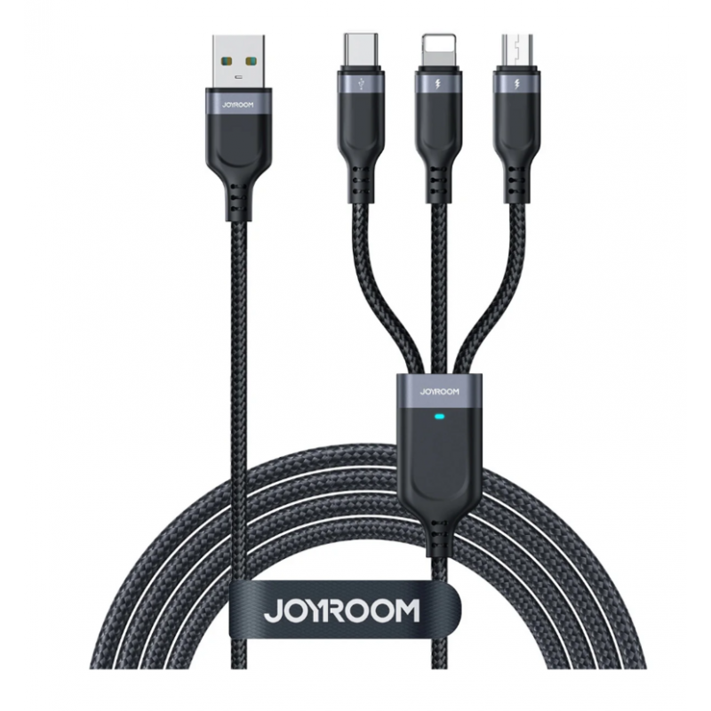 El cable de carga Joyroom S-A18 es la solución definitiva para quienes buscan versatilidad y eficiencia. Diseñado para simplificar tu vida digital, este innovador cable 3 en 1 permite cargar simultáneamente dispositivos con diferentes tipos de puerto, eliminando el desorden y la necesidad de múltiples cables.