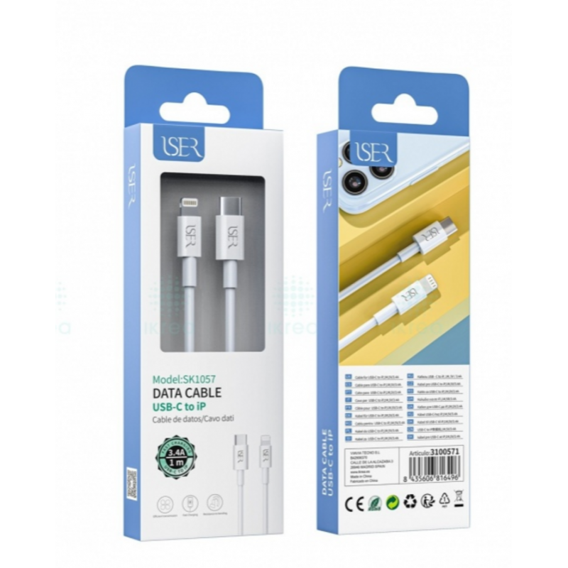 El cable Iser PD Tipo-C a Lightning (modelo SK1057) es la solución ideal para cargar y sincronizar tus dispositivos Apple de manera eficiente. Diseñado con tecnología Power Delivery (PD), garantiza una carga ultra-rápida, optimizando el tiempo que pasas conectado.
