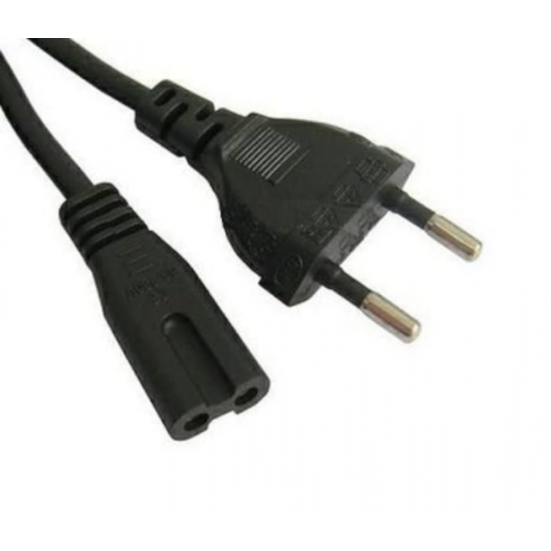 Este cable de corriente universal está diseñado para proporcionar una conexión eléctrica fiable a una amplia variedad de dispositivos electrónicos que utilizan el conector Tipo 8 (también conocido como IEC C7 o "figura 8"). Con una longitud de 1 metro, ofrece la flexibilidad necesaria para conectar sus aparatos a la toma de corriente sin exceso de cableado, siendo ideal para configuraciones domésticas o de oficina.