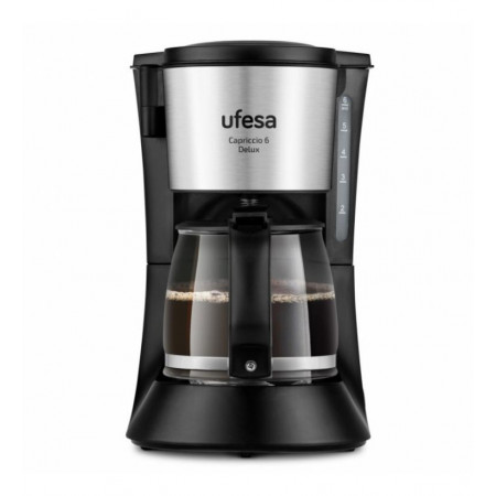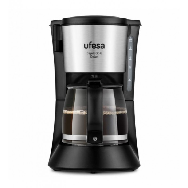 La cafetera de goteo Ufesa CG7115 Capriccio 6 Delux es la solución perfecta para los amantes del café que buscan eficiencia y sabor en un diseño compacto. Con una potencia de 600W y una capacidad de 0.6 litros, equivalente a 6 tazas, podrás disfrutar de un café recién hecho para ti y los tuyos.
