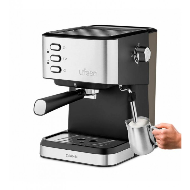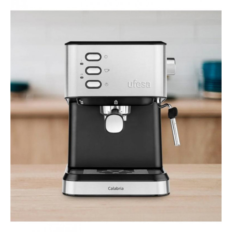 La cafetera espresso Ufesa Calabria es la elección perfecta para los amantes del buen café que buscan comodidad y resultados profesionales en casa. Diseñada con una potente bomba de presión de 20 bares, asegura una extracción óptima para obtener un espresso intenso y una crema perfecta en cada taza.