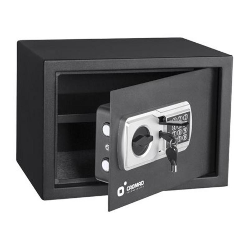 Esta caja fuerte electrónica de Cromad ha sido cuidadosamente diseñada para proporcionar un nivel superior de seguridad, integrando materiales de alta resistencia y sistemas de cierre avanzados. Es la solución ideal para la protección de dinero, joyas, documentos importantes, medios digitales, objetos sentimentales y cualquier otro artículo que requiera una custodia segura.