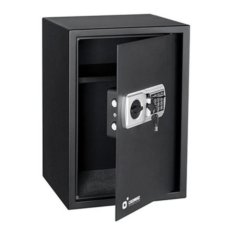 La Caja Fuerte Electrónica Cromad 500x350x310mm es la solución ideal para proteger sus objetos de valor, documentos importantes y recuerdos preciados en su hogar u oficina. Diseñada con la máxima seguridad en mente, combina materiales robustos y un sistema de cierre electrónico avanzado para ofrecerle tranquilidad.