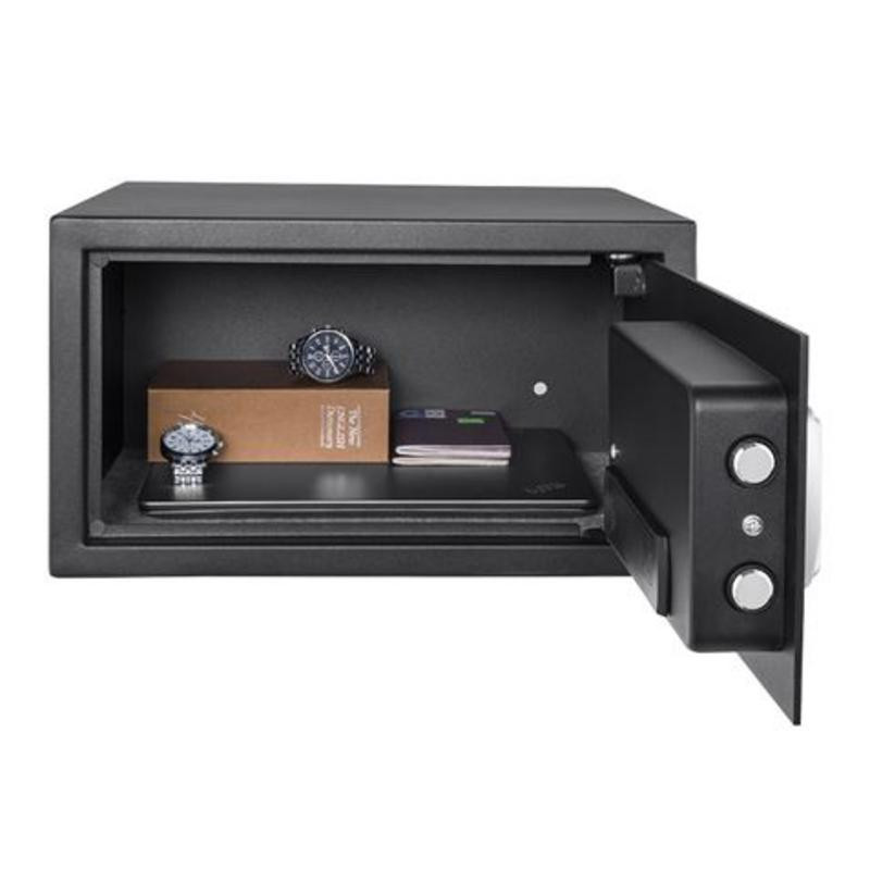 Mantén tus bienes más preciados seguros con la caja fuerte electrónica Cromad, diseñada para ofrecer un nivel de seguridad superior tanto en el hogar como en la oficina. Fabricada con materiales resistentes, esta caja fuerte incorpora sistemas de cierre avanzados para proteger contra robos y accesos no autorizados.