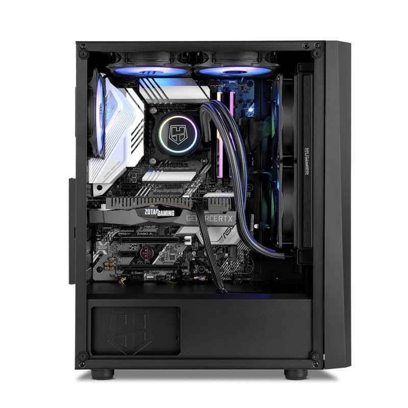 La Nox Hummer Frost es una semitorre diseñada para gamers que buscan un equilibrio entre estética y funcionalidad. Su llamativa tira frontal LED ARGB Rainbow añade un toque de color personalizable a tu setup, mientras que la ventana lateral de cristal templado te permite lucir los componentes internos de tu PC.