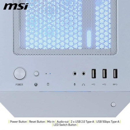 La MSI MAG FORGE M100R es una caja para PC gaming que combina un diseño atractivo con una excelente funcionalidad. Su panel frontal mallado asegura una ventilación óptima, manteniendo tu sistema fresco incluso en las sesiones de juego más intensas. El panel lateral de cristal templado te permite lucir los componentes internos y la iluminación ARGB, creando un espectáculo visual impresionante.