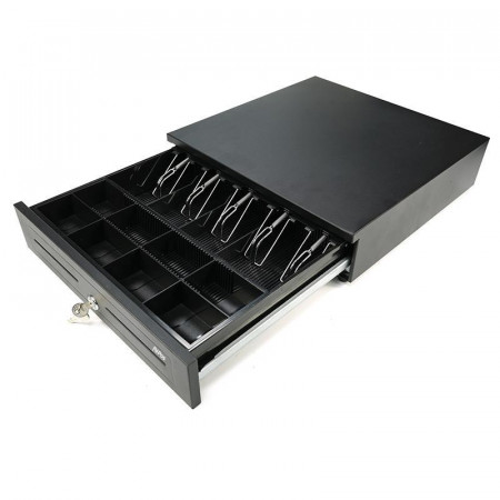 Su diseño compacto se adapta a cualquier espacio, mientras que la doble ranura para soportes facilita las transacciones. Los compartimentos personalizables permiten organizar el efectivo de manera eficiente, y la construcción en acero de alta calidad garantiza una larga vida útil.