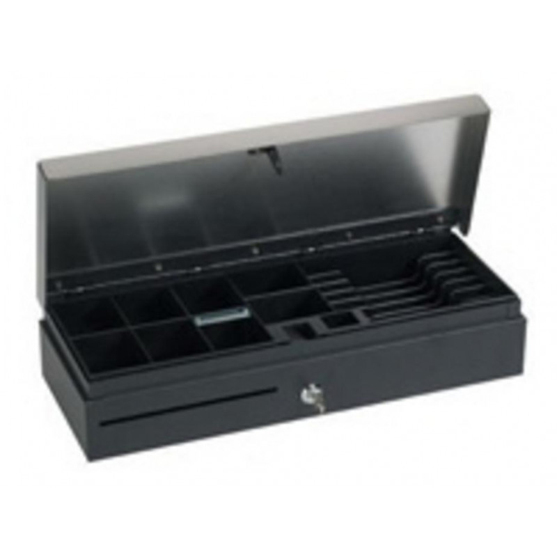 Este cajón portamonedas de apertura vertical es una solución robusta y segura para la gestión de efectivo en entornos comerciales. Su diseño compacto y funcional lo hace ideal para puntos de venta con espacio limitado.