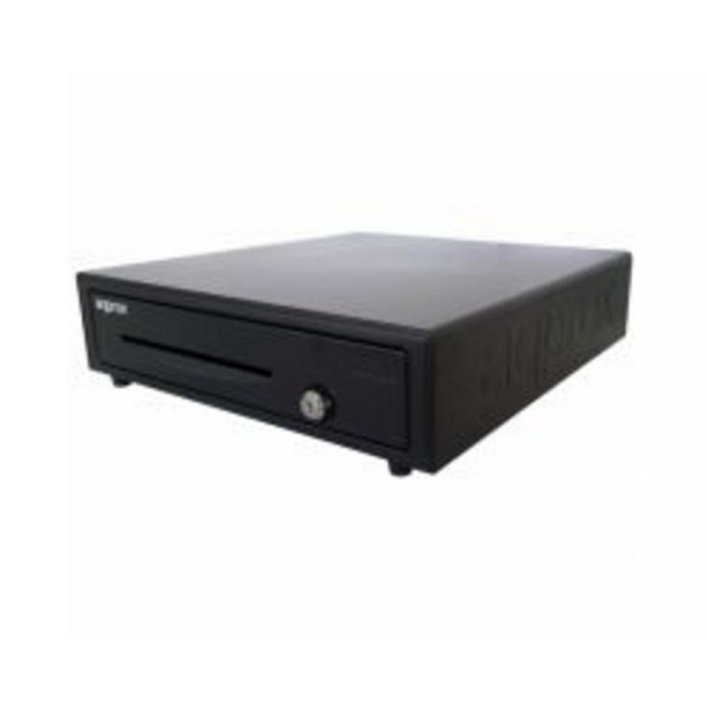 Cajón portamonedas Approx 410x420x100mm con apertura manual/automática RJ11 en color negro. Solución práctica y segura para la gestión de efectivo en tu negocio. (APPCASH01)