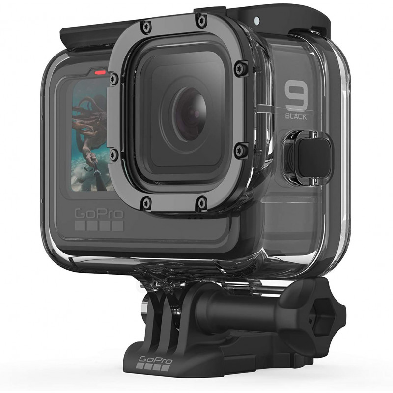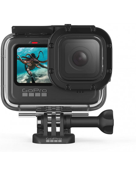 La HERO9 Black ya es resistente y sumergible de por sí, pero con esta sólida carcasa soportará todo lo que le eches. No solo la protege de la suciedad y de las partículas del aire durante la realización de actividades intensas sino que, además, es sumergible hasta 60 m, es decir, perfecta para el buceo en aguas profundas.