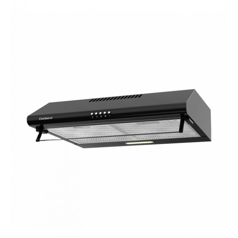 La campana extractora Corberó Selati640B combina funcionalidad y diseño en un formato compacto, ideal para cocinas que requieren una solución de extracción eficaz. Con un ancho de 60 cm, se integra fácilmente sobre tu placa de cocción, ofreciendo una potente capacidad de absorción.
