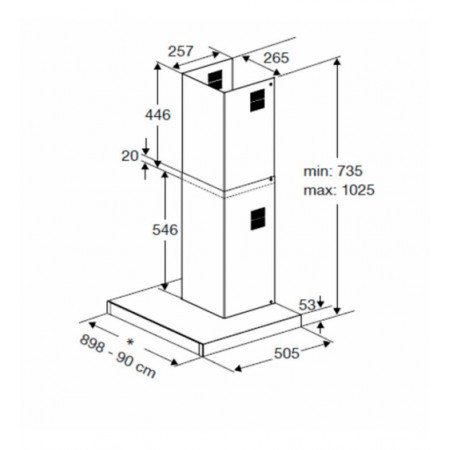 - Diseño y Dimensiones: Su ancho de 90 cm y fondo de 505 mm se adaptan perfectamente a la mayoría de las cocinas, ofreciendo un acabado sofisticado y profesional.