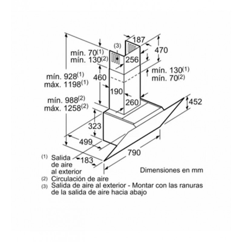 Eleva el diseño y la funcionalidad de tu cocina con la campana decorativa de pared Siemens LC87KHM60 B. Diseñada para integrarse perfectamente en espacios modernos, presenta un elegante acabado en cristal negro y unas medidas de 80 x 50 cm que se adaptan a la mayoría de las cocinas actuales.
