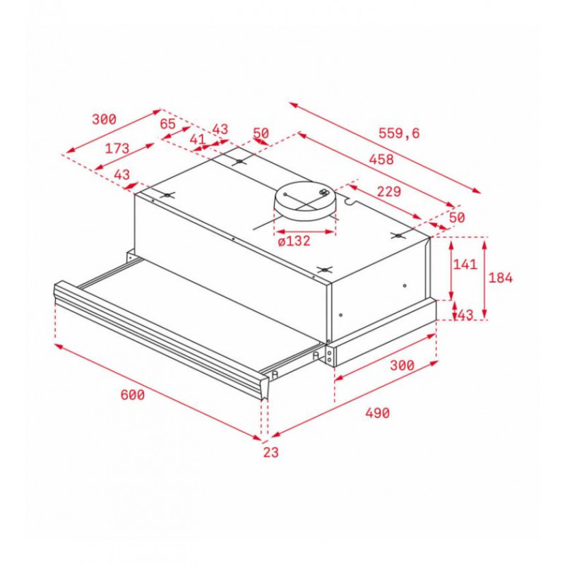 - Diseño Integrable: Estructura telescópica de 60cm en inox, con frente extraíble.