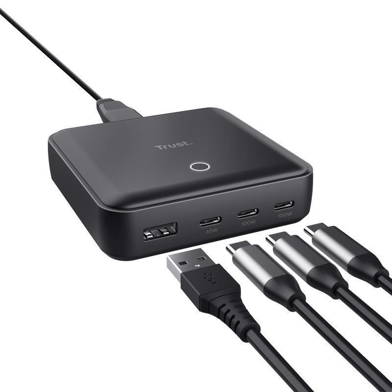 El Trust Maxo es un cargador de escritorio USB de 100W diseñado para ofrecer una solución de carga potente y versátil para múltiples dispositivos. Con 4 puertos, este cargador es perfecto para familias, espacios de vida compartidos o entornos de trabajo colaborativos.
