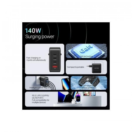 - 1 x Cargador de pared Vention GaN USB-C 20W Negro
