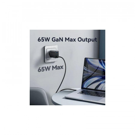 Cuenta con 2 puertos USB-C y 1 puerto USB-A, lo que te permite cargar hasta tres dispositivos simultáneamente. Con una potencia máxima de 65W, este cargador es compatible con una amplia gama de dispositivos, desde smartphones y tablets hasta ordenadores portátiles.