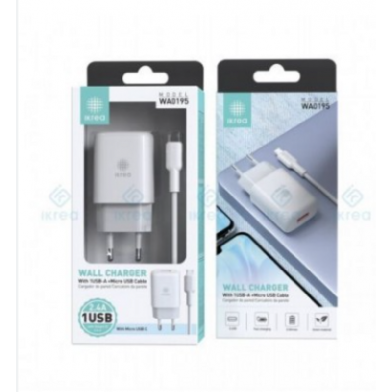 El cargador de pared Ikrea modelo WA0195 es la solución ideal para mantener tus dispositivos siempre listos. Diseñado para ofrecer una potencia de 12W, garantiza una carga eficiente y segura para una amplia gama de equipos.