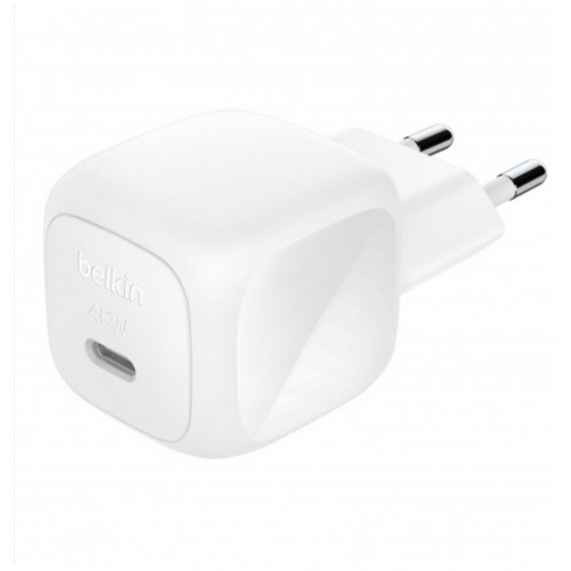 El cargador de pared universal Belkin Boost Charge USB-C de 45W (modelo WCA013KQWH) es la solución perfecta para mantener tus dispositivos cargados rápidamente y de forma segura. Con su tecnología Power Delivery (PD), este cargador ofrece hasta 45 vatios de potencia, lo que permite cargar eficientemente una amplia gama de dispositivos, desde smartphones y tablets hasta pequeños ordenadores portátiles con puerto USB-C.
