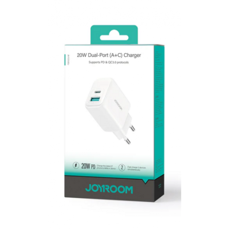 El Cargador Joyroom 20W Doble Puerto A+C JR-TCF21EU Blanco es la solución perfecta para mantener tus dispositivos cargados rápidamente y de forma segura. Diseñado con un puerto USB-C que soporta Power Delivery (PD) de hasta 20W y un puerto USB-A con Quick Charge (QC) de hasta 18W, este adaptador te permite cargar simultáneamente tu smartphone, tablet u otros gadgets compatibles.