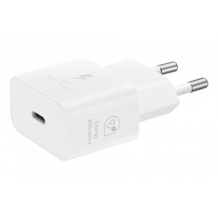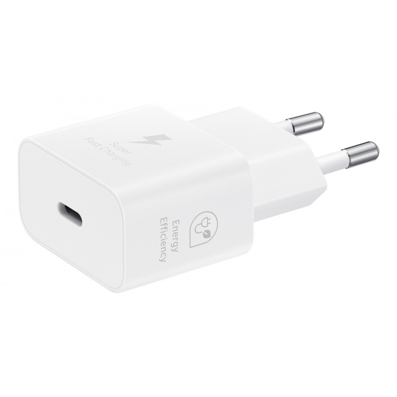 El cargador de pared Samsung USB-C de 25W (modelo EP-T2510) está diseñado para ofrecer una experiencia de carga ultrarrápida y eficiente. Compatible con una amplia gama de dispositivos que admiten carga USB Power Delivery 3.0 (PD 3.0) y Programmable Power Supply (PPS), este adaptador te permite recargar la batería de tu smartphone, tablet u otros dispositivos compatibles en tiempo récord. Su avanzada tecnología de Carga Súper Rápida garantiza que tus dispositivos Samsung alcancen su máxima potencia de forma segura y veloz.