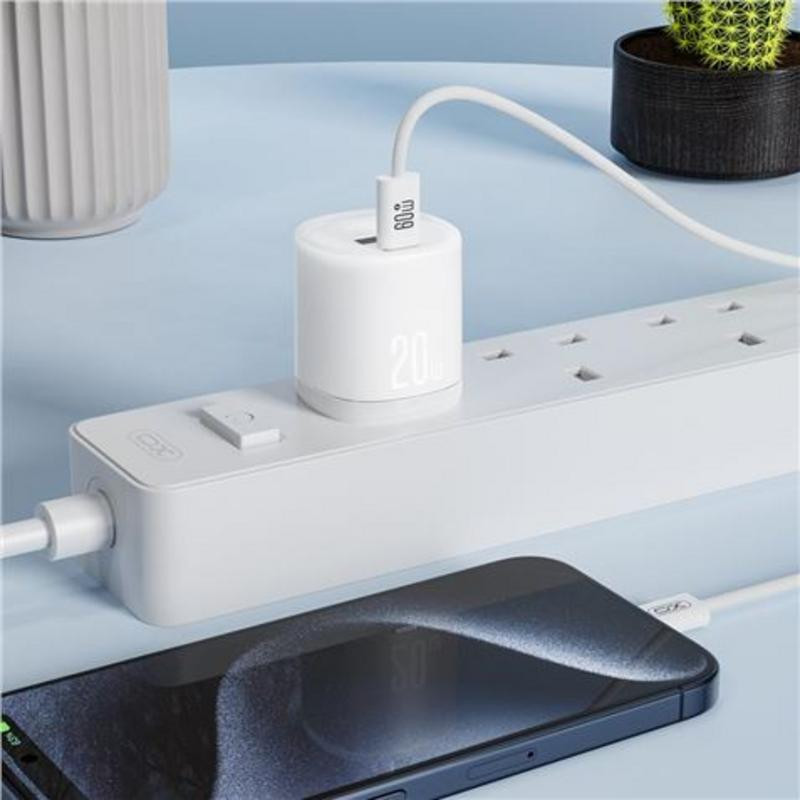 El cargador rápido XO L144 en color blanco es la solución perfecta para mantener tus dispositivos siempre listos con la máxima velocidad y eficiencia. Diseñado para ser compacto, seguro y altamente eficaz, este adaptador de corriente es ideal para una amplia gama de smartphones, tablets y otros dispositivos compatibles con tecnologías de carga rápida.