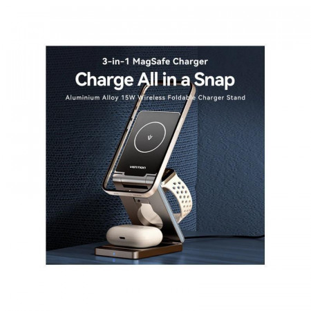 Con el cargador inalámbrico Vention FGFH0, disfruta de una carga rápida, segura y eficiente para todos tus dispositivos Apple.