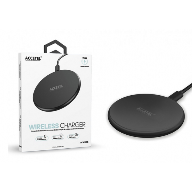 El cargador inalámbrico Accetel ACW510B está diseñado para simplificar tu vida, ofreciendo una solución de carga eficiente y sin enredos de cables. Con una potente salida de 15W, este cargador te permite recargar tus dispositivos compatibles con la tecnología Qi a una velocidad óptima, asegurando que siempre tengas energía cuando la necesites.