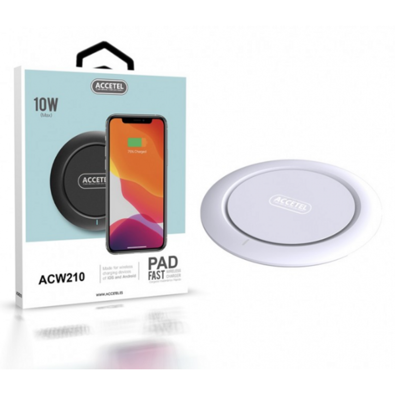 Experimenta la máxima comodidad y un diseño minimalista con el cargador inalámbrico Accetel 10W (ACW210W). Diseñado para integrarse perfectamente en cualquier hogar u oficina, este cargador en color blanco te permite decir adiós a los cables enredados. Simplemente coloca tu smartphone u otro dispositivo compatible con el estándar Qi sobre su superficie y disfruta de una carga eficiente de hasta 10W.
