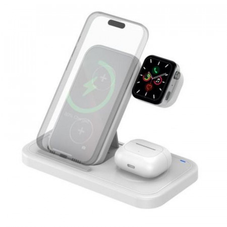 - Carga simultánea 4 en 1: Recarga tu smartphone (compatible con iOS y Android), reloj inteligente (compatible con Watch iOS), auriculares Bluetooth (tipo AirPods o similares) y un dispositivo adicional a través de su puerto USB trasero.