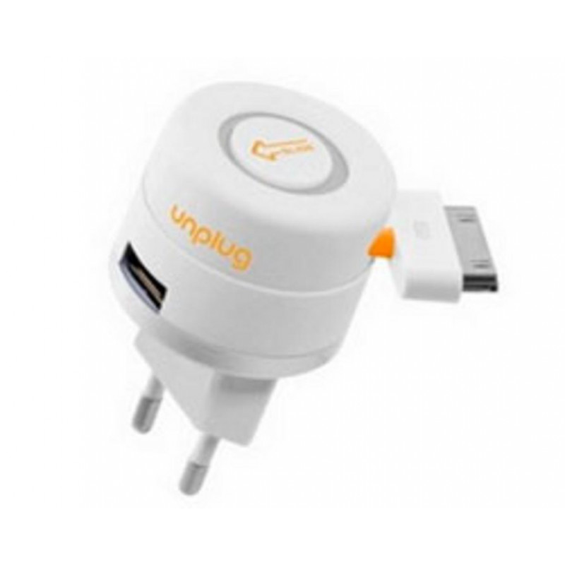 Cargador de Viaje WOXTER 1A (TCU 1000 MIN), ideal para mantener tus dispositivos cargados estés donde estés. Compacto y retráctil, perfecto para viajar.