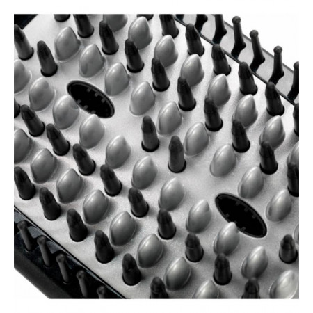 Este innovador cepillo cuenta con una combinación de púas que trabajan en sinergia para desenredar, alisar y proteger tu cabello. Sus púas de plástico duro desenredan suavemente, las de silicona guían el cabello, y las de cerámica aseguran una distribución uniforme del calor para un alisado perfecto.
