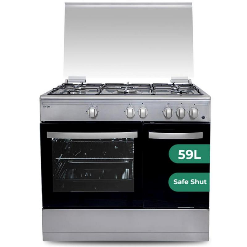 Transforma tu cocina en un verdadero centro culinario con la elegante y funcional Svan Cocina a Gas SKGW5901PBX. Diseñada en acero inoxidable de alta calidad y con una anchura de 90 cm, esta cocina de libre instalación es perfecta para los amantes de la gastronomía que buscan eficiencia y seguridad en sus preparaciones.