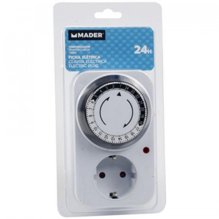 El programador de enchufe Mader de 24 horas es la solución perfecta para controlar automáticamente el encendido y apagado de tus dispositivos eléctricos en el hogar. Diseñado para un uso sencillo y eficiente, este temporizador mecánico te permite establecer horarios precisos, optimizando el consumo de energía y añadiendo un extra de confort a tu vida diaria.
