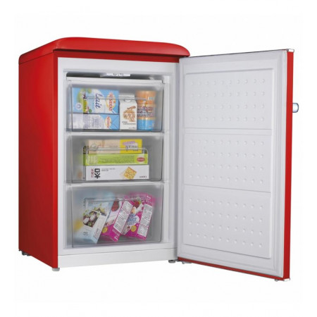 Este modelo destaca por su sistema de frío estático, ideal para la conservación óptima de tus alimentos congelados. Su diseño compacto y el llamativo color rojo lo convierten en un complemento funcional y estético para cualquier cocina o despensa.