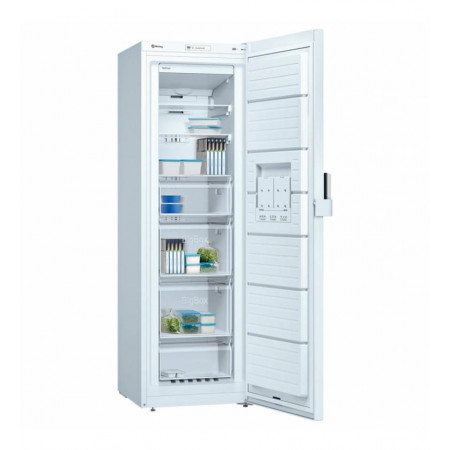 El congelador vertical Balay 3GFE563WE es la solución perfecta para quienes buscan eficiencia y espacio para sus alimentos congelados. Con una generosa capacidad total de 242 litros, ofrece amplio almacenamiento organizado gracias a sus 4 cajones y bandejas de cristal de seguridad, ideales para guardar todo tipo de productos.