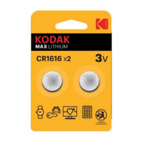 Mantén tus dispositivos electrónicos funcionando sin problemas con el pack de 2 baterías de litio Kodak CR1616 de 3V. Estas baterías son ideales para una amplia gama de dispositivos, desde relojes y calculadoras hasta controles remotos y más.