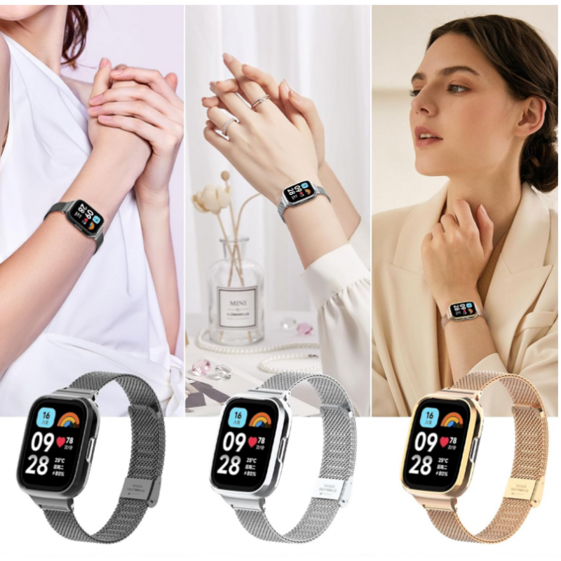 Dale un toque de distinción y modernidad a tu smartwatch con la correa milanesa, perfectamente compatible con los modelos Redmi Watch 3 Active y Redmi Watch 3 Lite. Diseñada para aquellos que buscan combinar funcionalidad y estilo, esta correa transformará la apariencia de tu dispositivo.