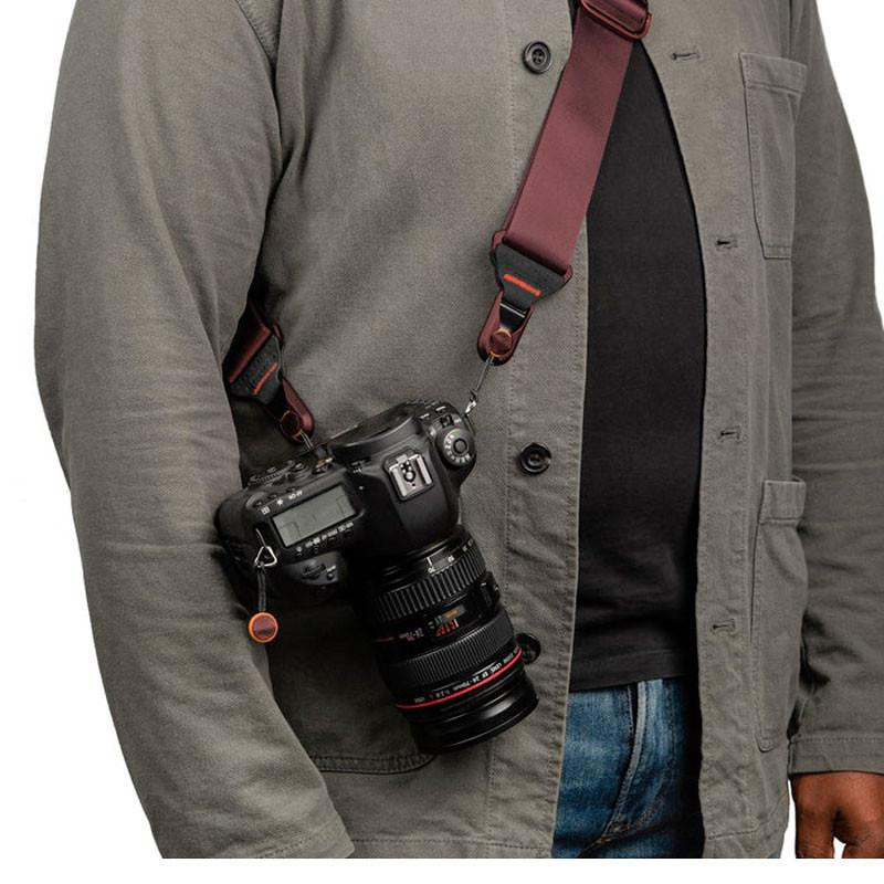 La Correa Peak Design Slide V2 Eclipse es la solución perfecta para llevar tu cámara con la máxima comodidad y un estilo sofisticado. Diseñada para la versatilidad, esta correa te permite transportar tu equipo fotográfico de múltiples maneras: como bandolera para un acceso rápido, al hombro para mayor seguridad o alrededor del cuello para una distribución equilibrada del peso.